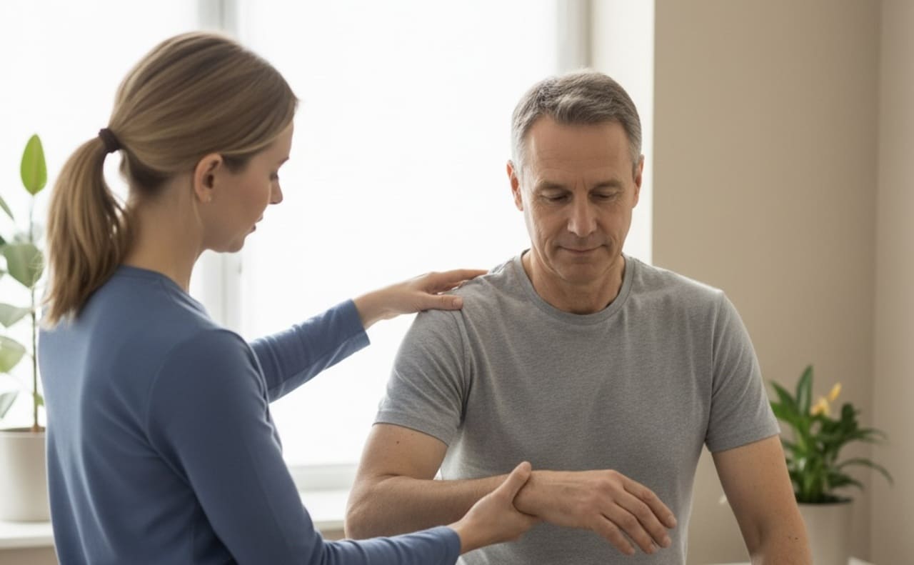 Understand the role of physiotherapy in frozen shoulder treatment, including advanced therapies and key exercises to regain mobility and reduce discomfort.